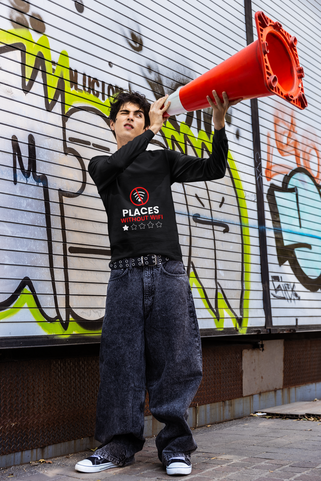 No Wi-Fi Male Round Neck Full Sleeve T-shirt