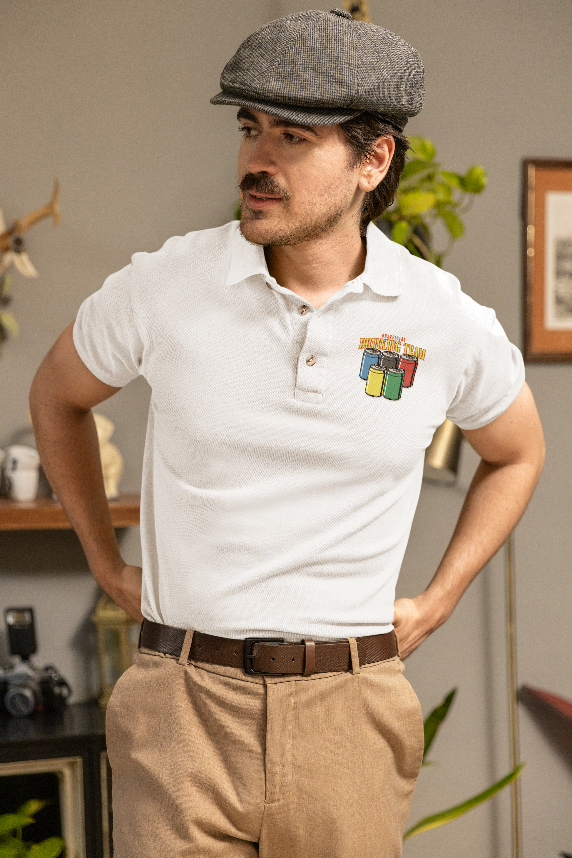 With a classic fit that flatters every body type, this polo shirt is designed to keep you looking sharp, whether you're sipping a cold drink at a barbecue or enjoying a night out. The iconic "Drinking Team" logo is prominently displayed, showcasing your pride and camaraderie with fellow drink enthusiasts. Available in a variety of colors, you can choose the one that best matches your personality or your favorite team’s colors!