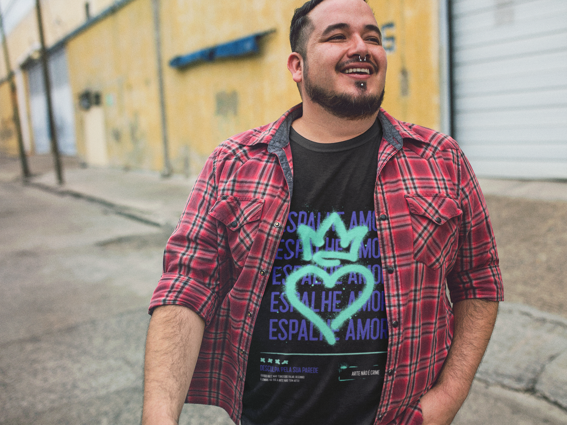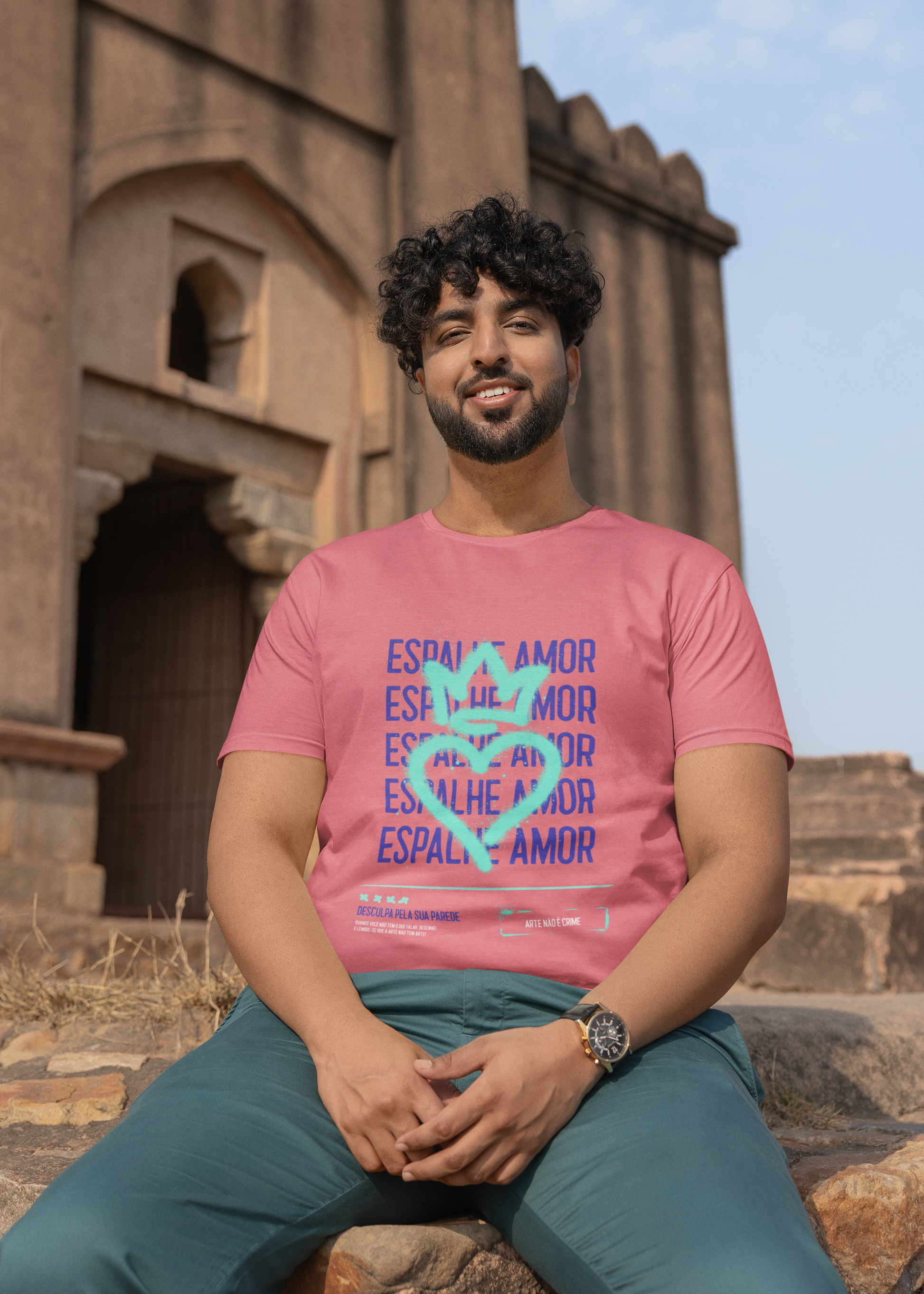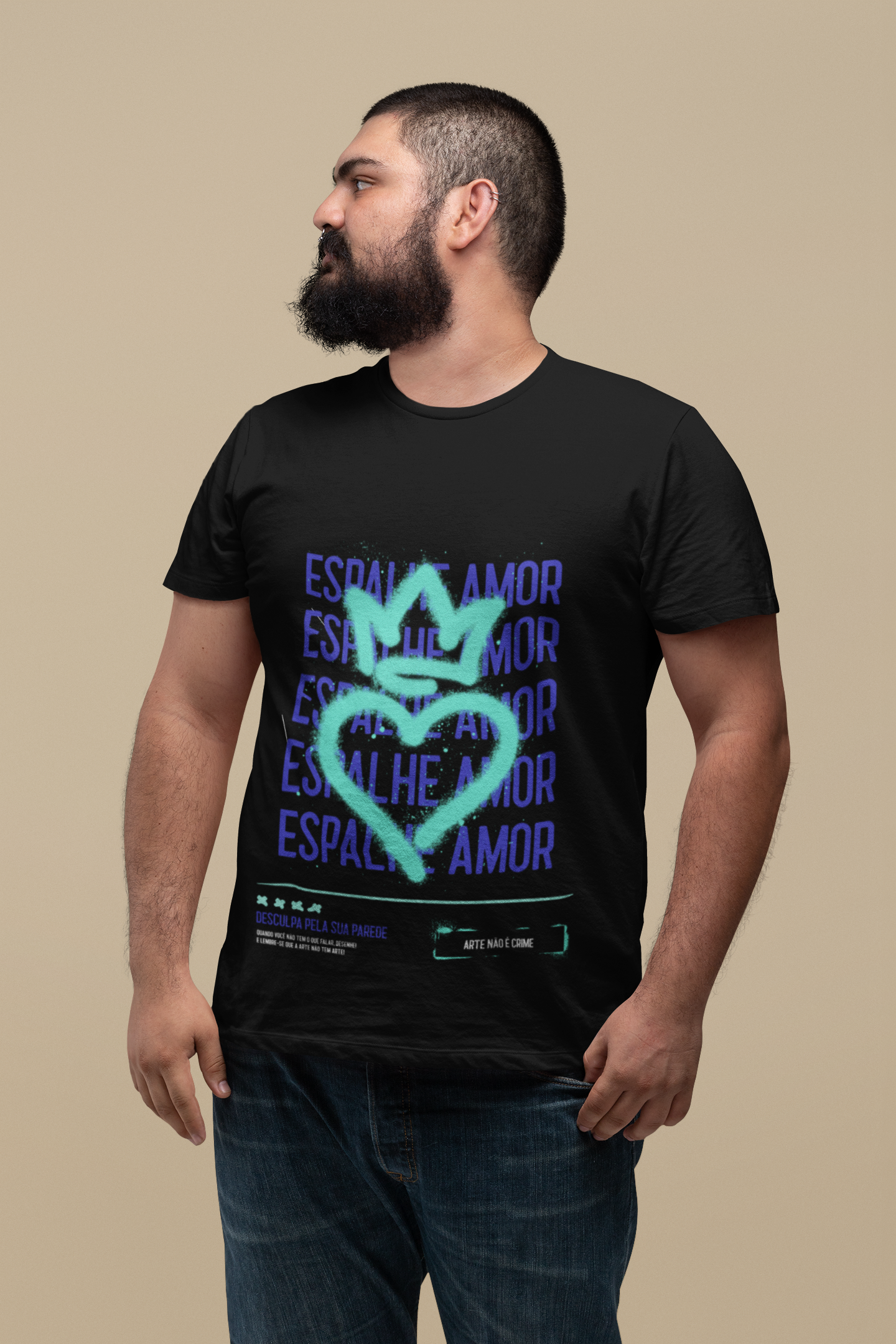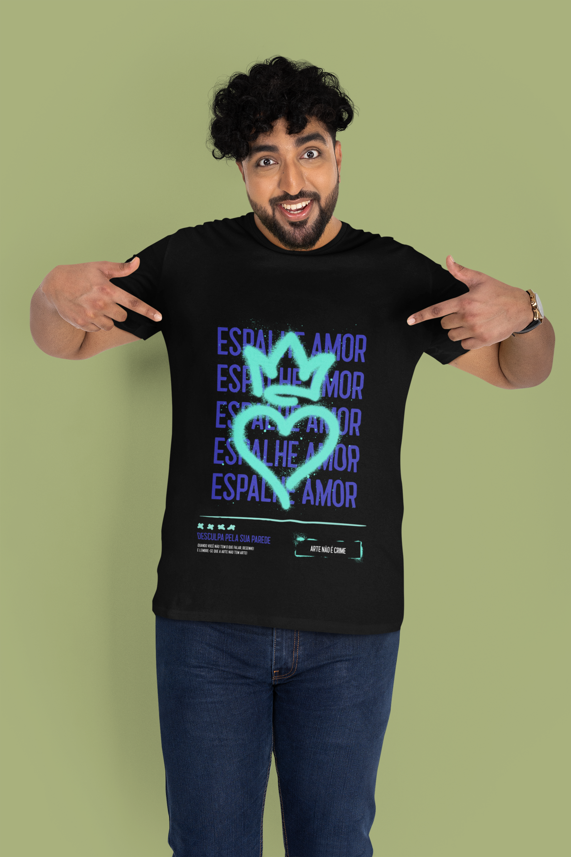 The "Espalhe Amor" graphic, which translates to "Spread Love," is emblazoned boldly across the front, reminding everyone to share positivity wherever they go. This shirt is perfect for casual outings, gym sessions, or simply relaxing on the weekend. Its versatile design allows it to pair effortlessly with jeans, shorts, or joggers, making it a must-have staple in your wardrobe.