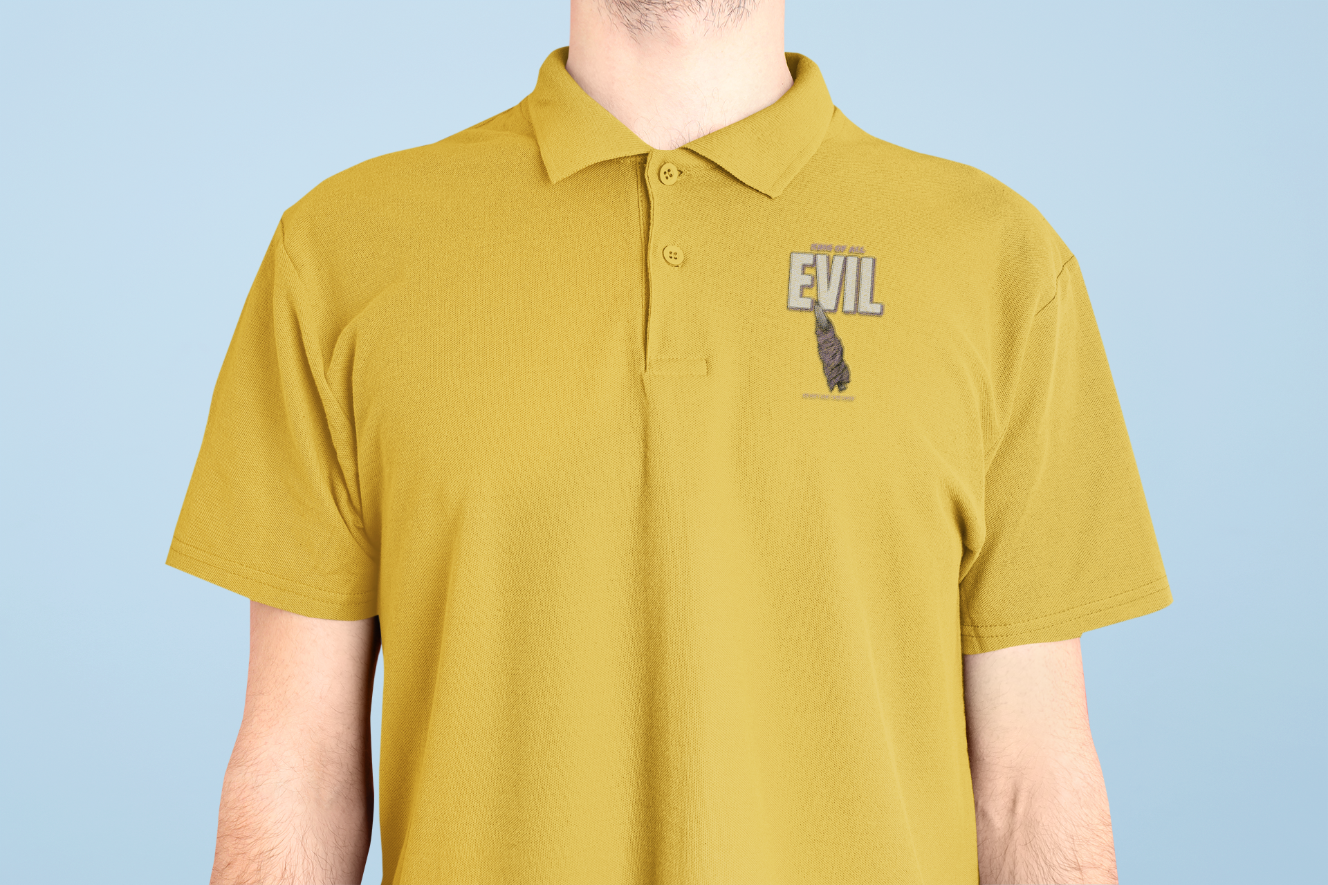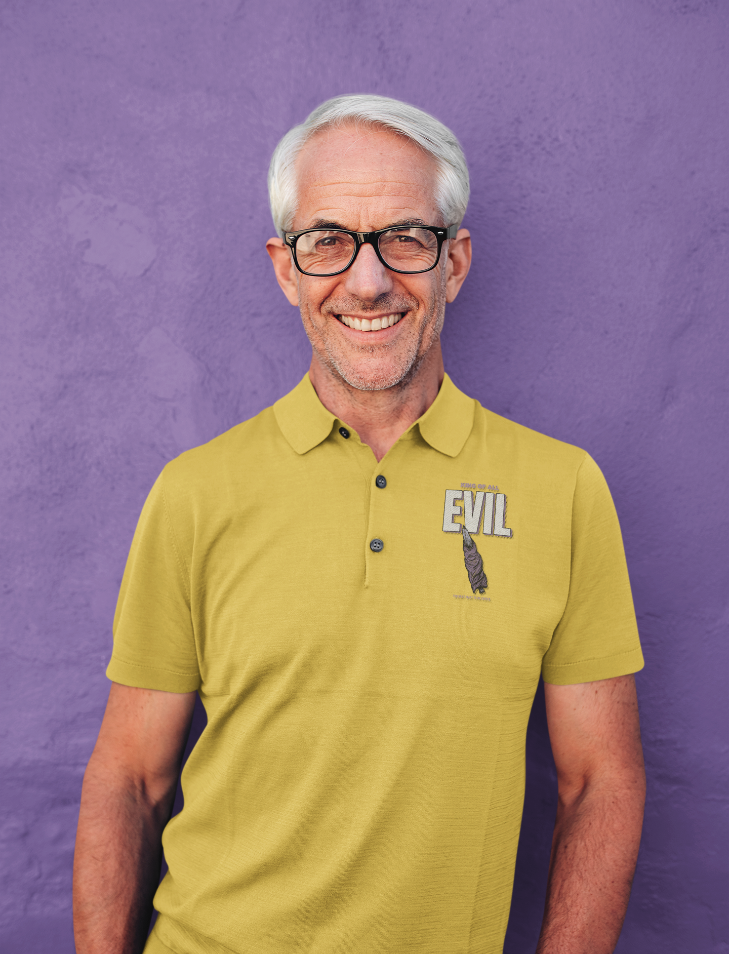 Available in a range of sizes, this polo fits perfectly on every body type, allowing you to look your best without sacrificing comfort. Pair it with your favorite jeans or shorts for an effortlessly stylish look that’s ideal for any occasion. Whether you're going for a laid-back vibe or dressing it up for a night out, the Evil Men's Polo T-shirt is versatile enough to suit any event.