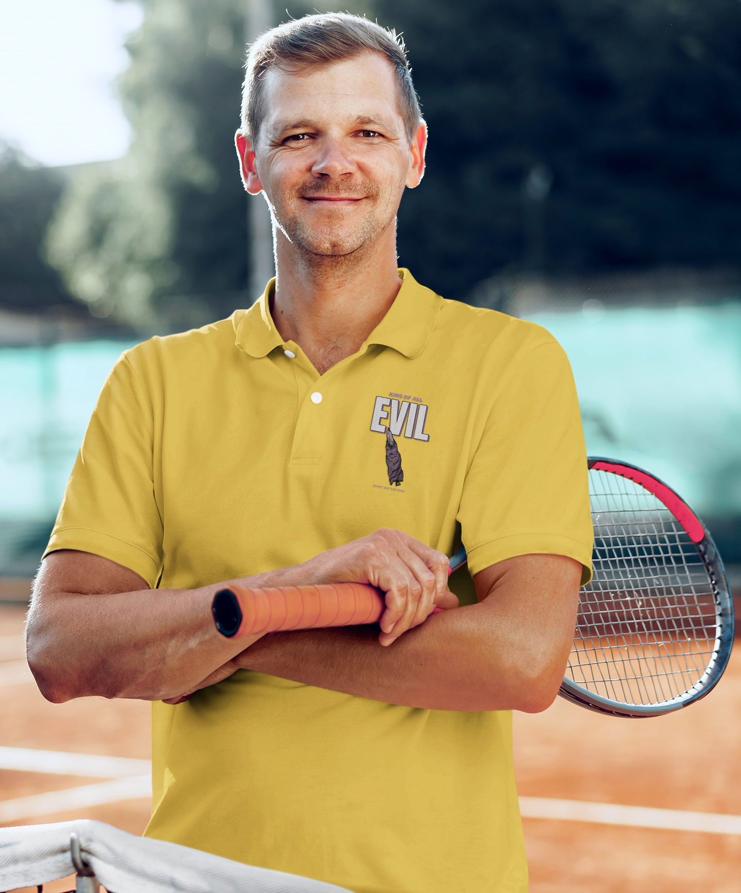 The Evil Men's Polo T-shirt is made from high-quality, breathable cotton that keeps you comfortable throughout the day. Its lightweight fabric ensures you stay cool, whether you're hitting the golf course, enjoying a barbecue with friends, or just lounging at home. The classic polo collar adds a touch of sophistication, while the striking evil-inspired graphic sets you apart from the crowd.