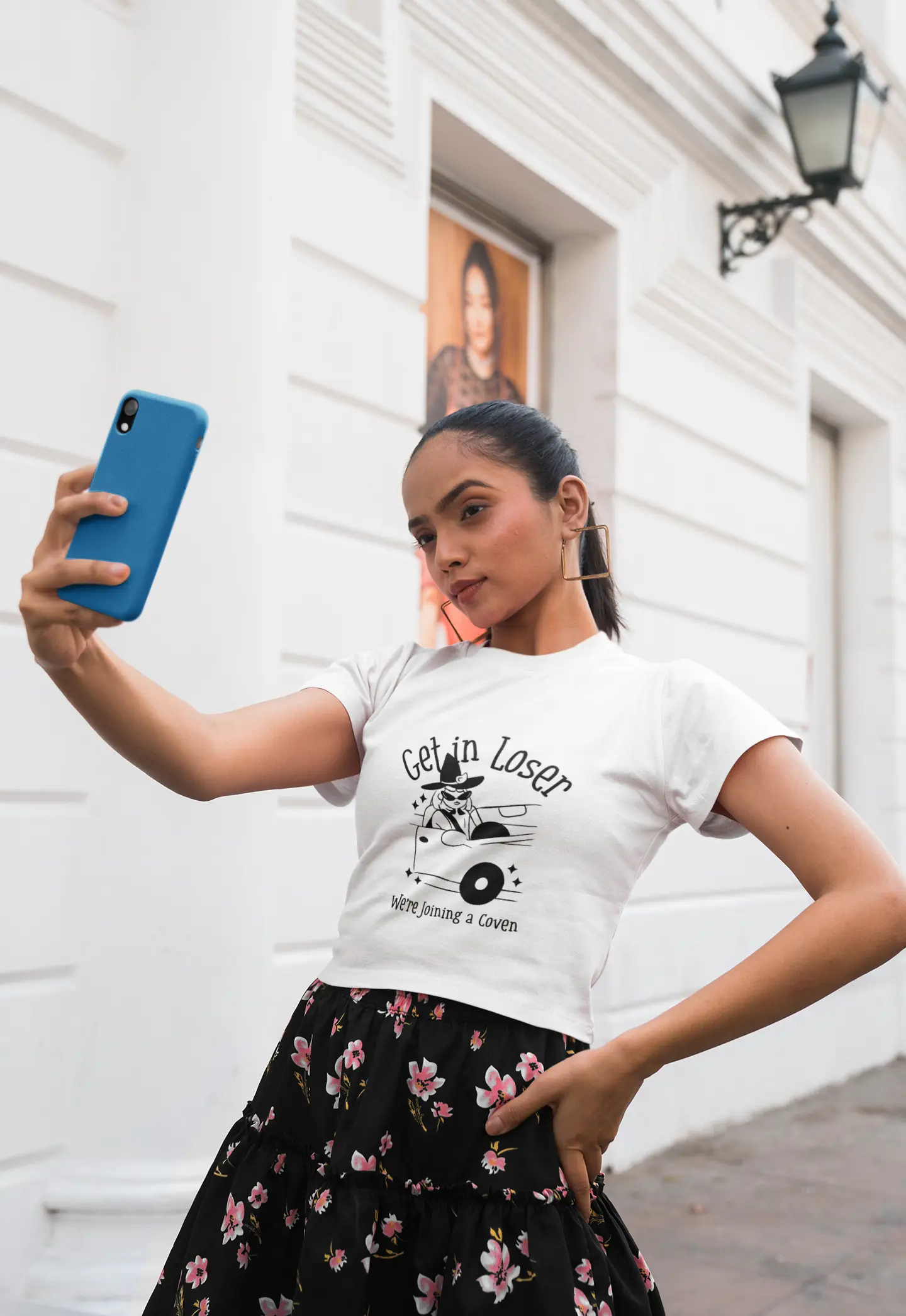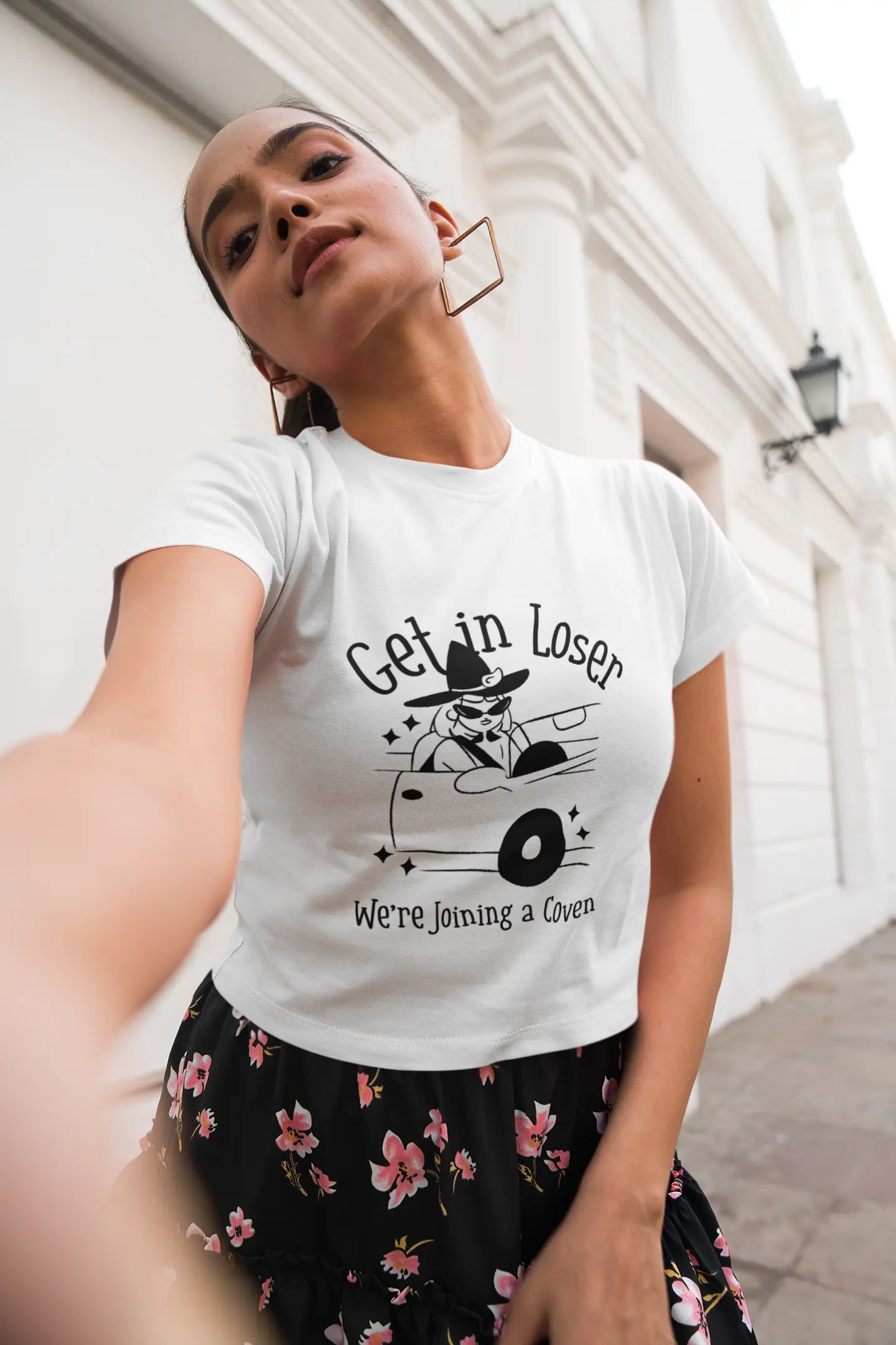 Elevate your casual wardrobe with this fun and fashionable crop top. Order your "Get In Loser Women's Crop Top" today and embrace a style that speaks to your bold personality!