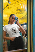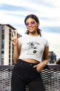 The cheeky phrase on the front adds a playful touch that is sure to turn heads and spark conversations. Pair it with your favorite high-waisted jeans, shorts, or a cute skirt for a chic, laid-back look. Whether you're grabbing coffee with friends, hitting the gym, or just enjoying a sunny day, this crop top will keep you feeling stylish and confident.