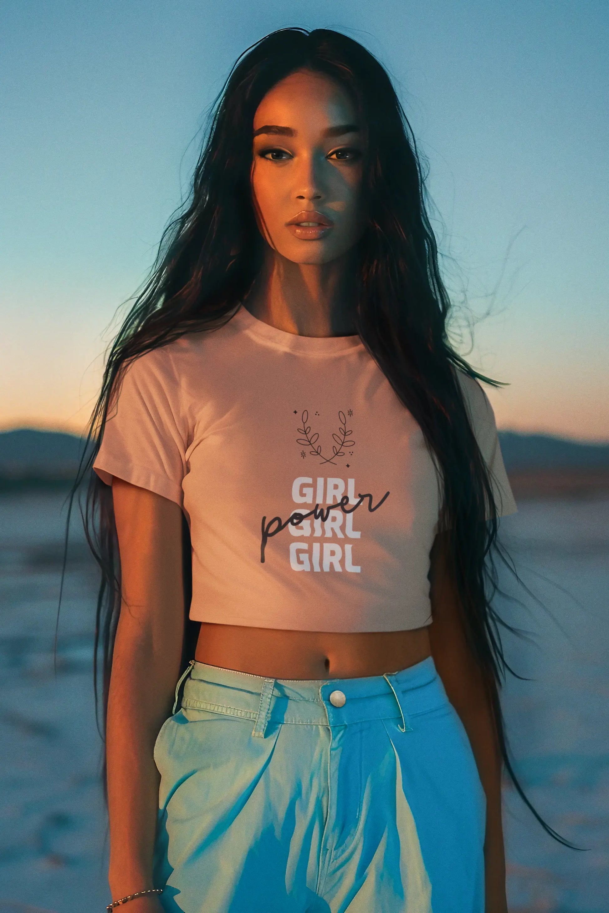 Perfect for layering under jackets or wearing solo on sunny days, this crop top is a must-have for every fashion-forward woman. Pair it with your favorite accessories and footwear for a complete look that stands out. Show the world your strength and style with our Girl Power Women's Crop Top – because when women support each other, incredible things happen!
