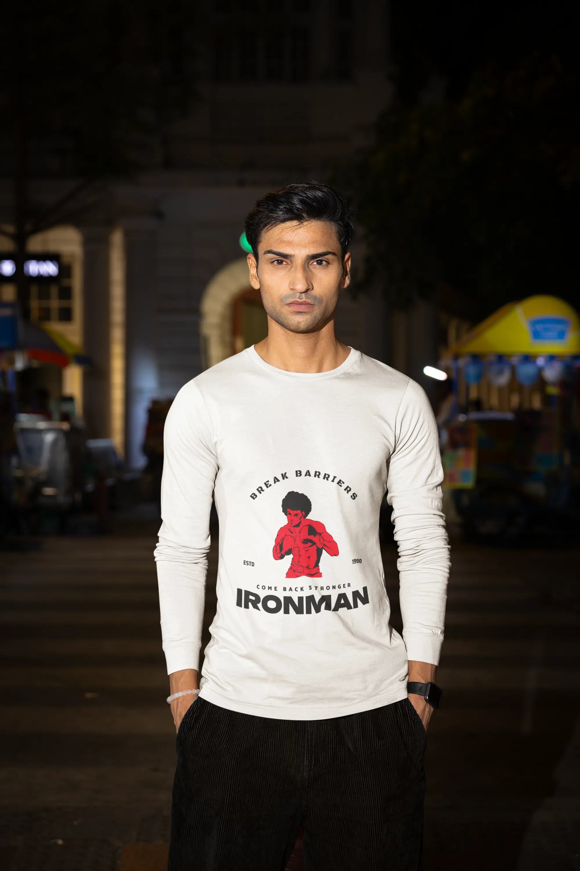Introducing our exclusive Ironman Male Round Neck Full Sleeve T-shirt, designed for those who embody strength and resilience. Crafted with premium quality, this T-shirt offers a perfect blend of comfort and style, making it an essential addition to your wardrobe.